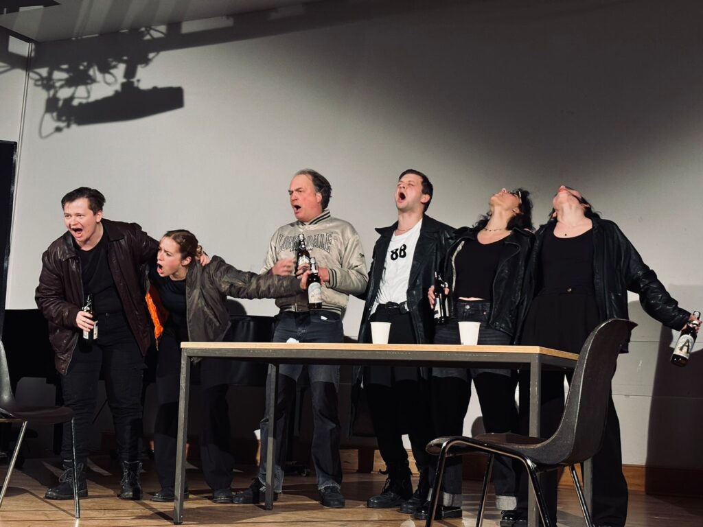 Der 12. Mi 2025 war der Tag der Aufführung im Georg-Herwegh Gymnasium in Berlin Hermsdorf. Vor der Kulisse eines Gymnasiums, das den Charme der 20er Jahre versprüht. Wie neu. Ken Beschuss. Den II. Weltkrieg überlebt. Das Ensemble hinterließ – wie sooft mit seiner Darbietung nachdenkliche Zuschauer.